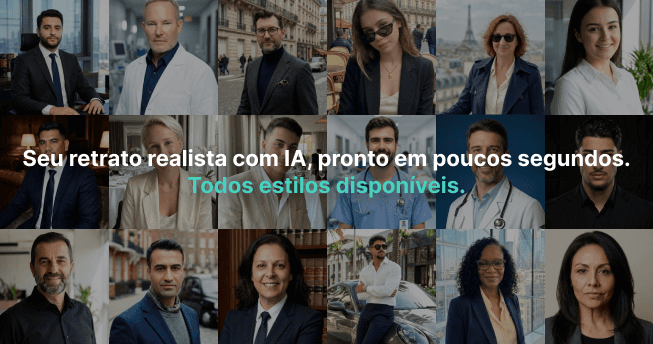 A Inteligência Artificial da Retrato Premium cria sua melhor versão com realismo e entrega instantânea.